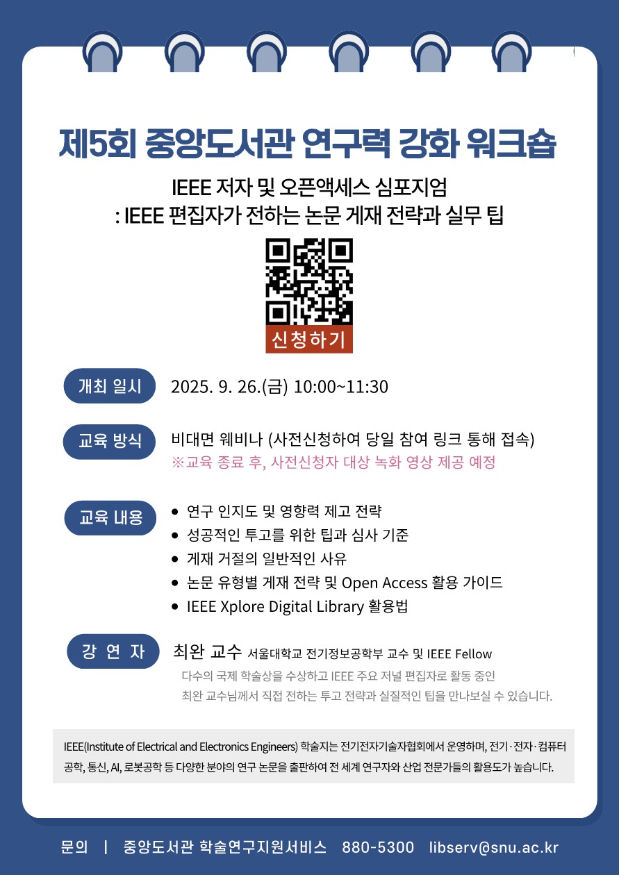 [일반공지] [9.26] 2025년 제5회 중앙도서관 연구력 강화 워크숍 개최 안내
