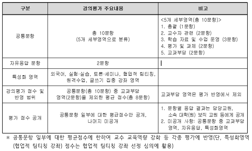 3. 평가대상: 학부 및 대학원 강좌(‘대학원 논문연구’ 제외) 전체